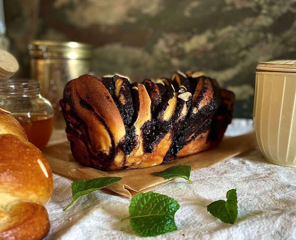 A szerda 6 óra után leadott rendeléseket sajnos nem biztos hogy maradéktalanul tudom teljesíteni mindig, mert ekkorra már adott a beetetett kovász mennyisége. Lassú, vadkovászolt, édes kalács tésztába fonódott vajas, csokoládés töltelék. A hozzávalók 70%-át csomagolásmentesen szerzem be, illetve a kiszállítás során is igyekszem újra hasznosított csomagolást használni. Összetevők: cukor, tej, búzaliszt, tojás, citromhéj, só, kovász, vanília, kakaópor (22%-os), vaj, sütő rum.