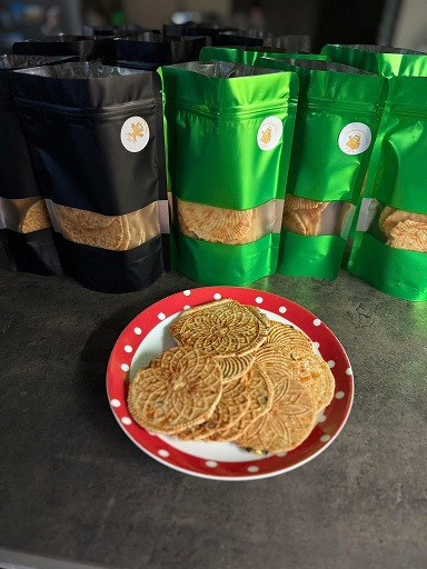 Rizslisztből és zabpehelyből készült ropogós tallér.
