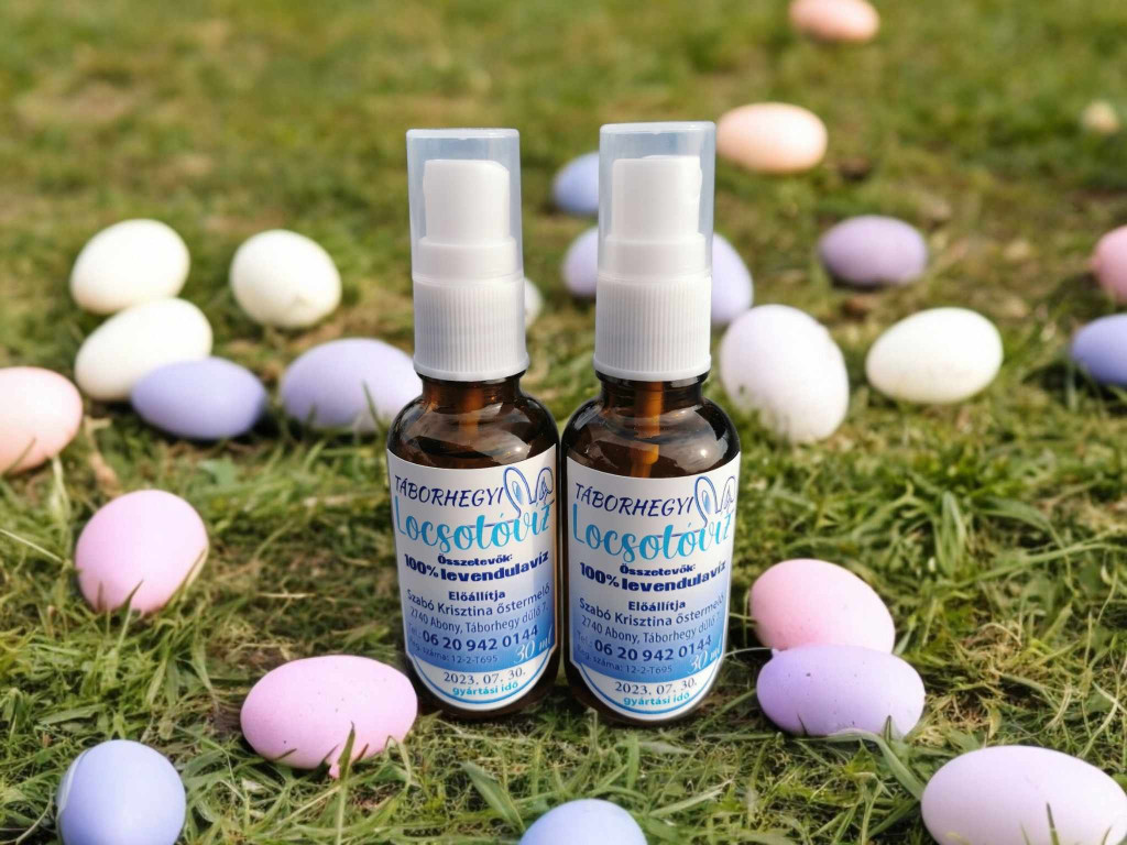 Táborhegyi locsolóvíz 30 ml Összetevők: 100 % levendulavíz. Alkalmas húsvéti locsolkodásra. Bőrre fújva nyugtató hatású, desztillált víz levendula olajjal.