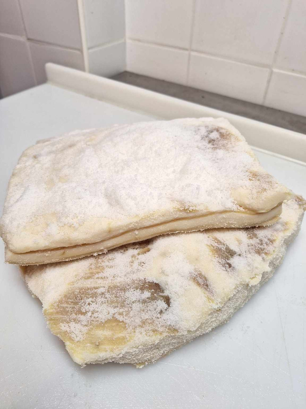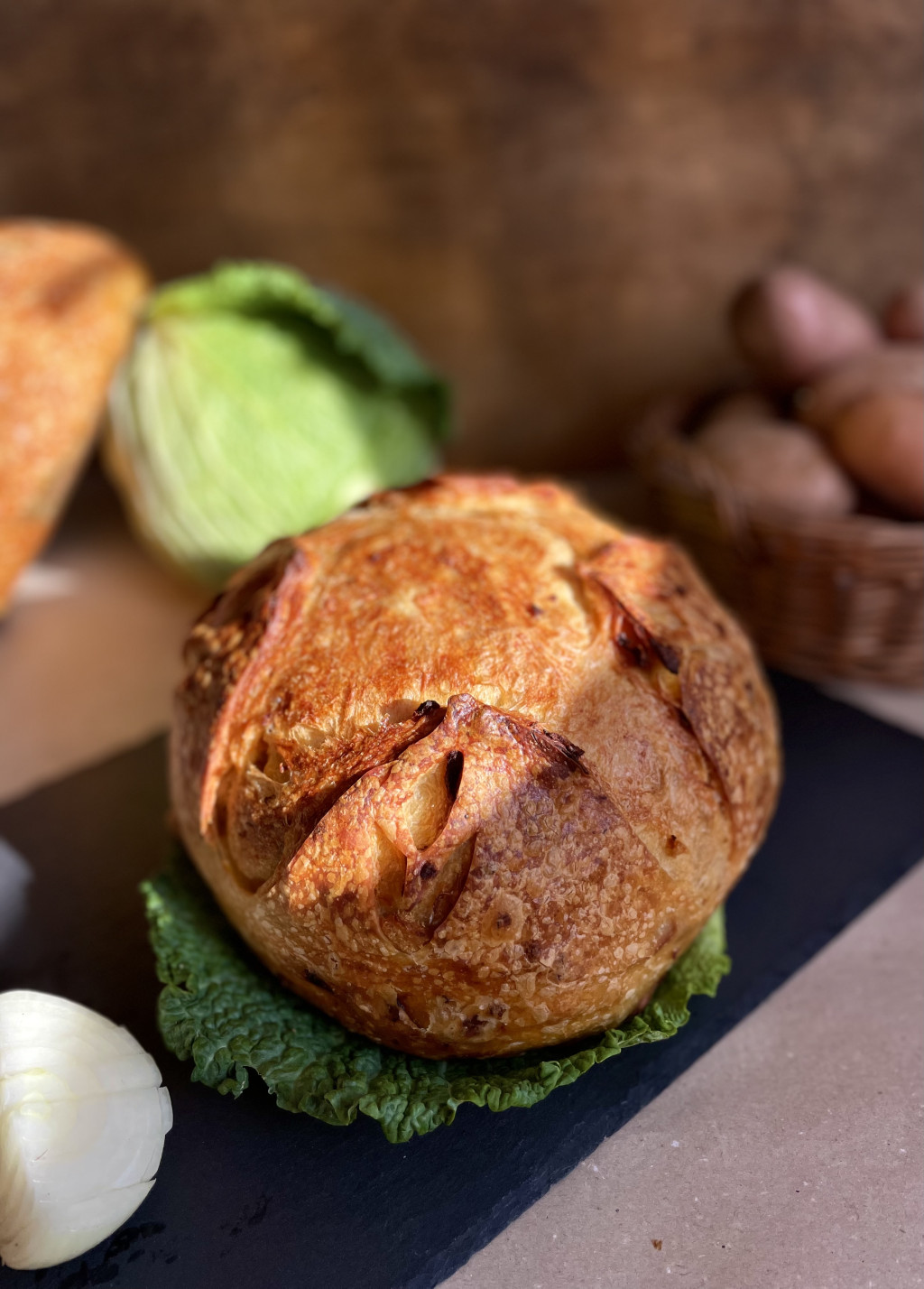 Hosszú, vadkovászos eljárással készült fehér kenyér, amit egy kevés burgonya püré tesz még puhábbá a ropogós felszín alatt. Mivel semmilyen adalékanyagot nem használok, így zöldségekkel igyekszem elérni a legfinomabb kenyér szerkezetet, ami ez esetben a burgonya/ batáta, de ez ízében és textúrájában sem markánsan észrevehető. Összetevők: Búzaliszt, víz, só, édesburgonya püré, kovász