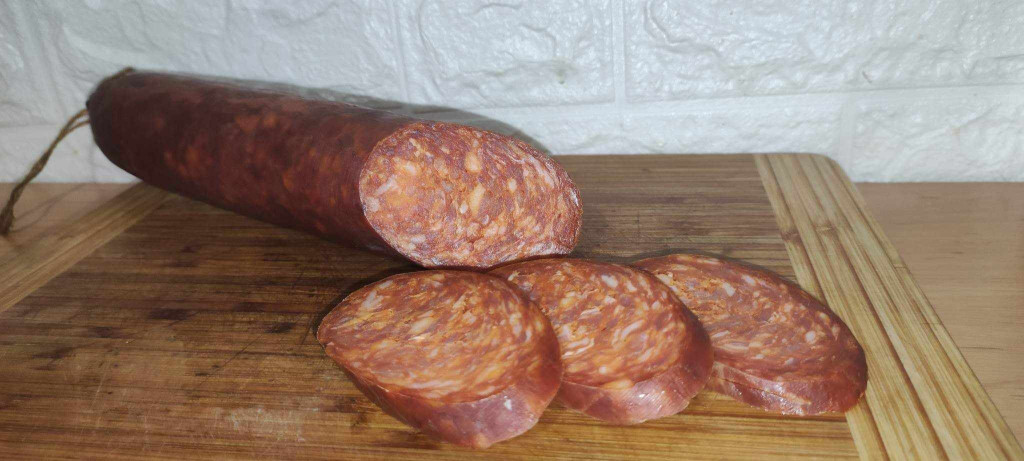 A darabár hozzávetőleges becslés, a pontos ár a súlymérés után kerül meghatározásra. Békés megyei ízvilággal készült termék. Félszáraz szelhető állapotú, nitrit só mentes. Összetevők: sertéshús és szalonna, nitritmentes só, fűszerkömeny, fűszerpaprika, fokhagymapor.