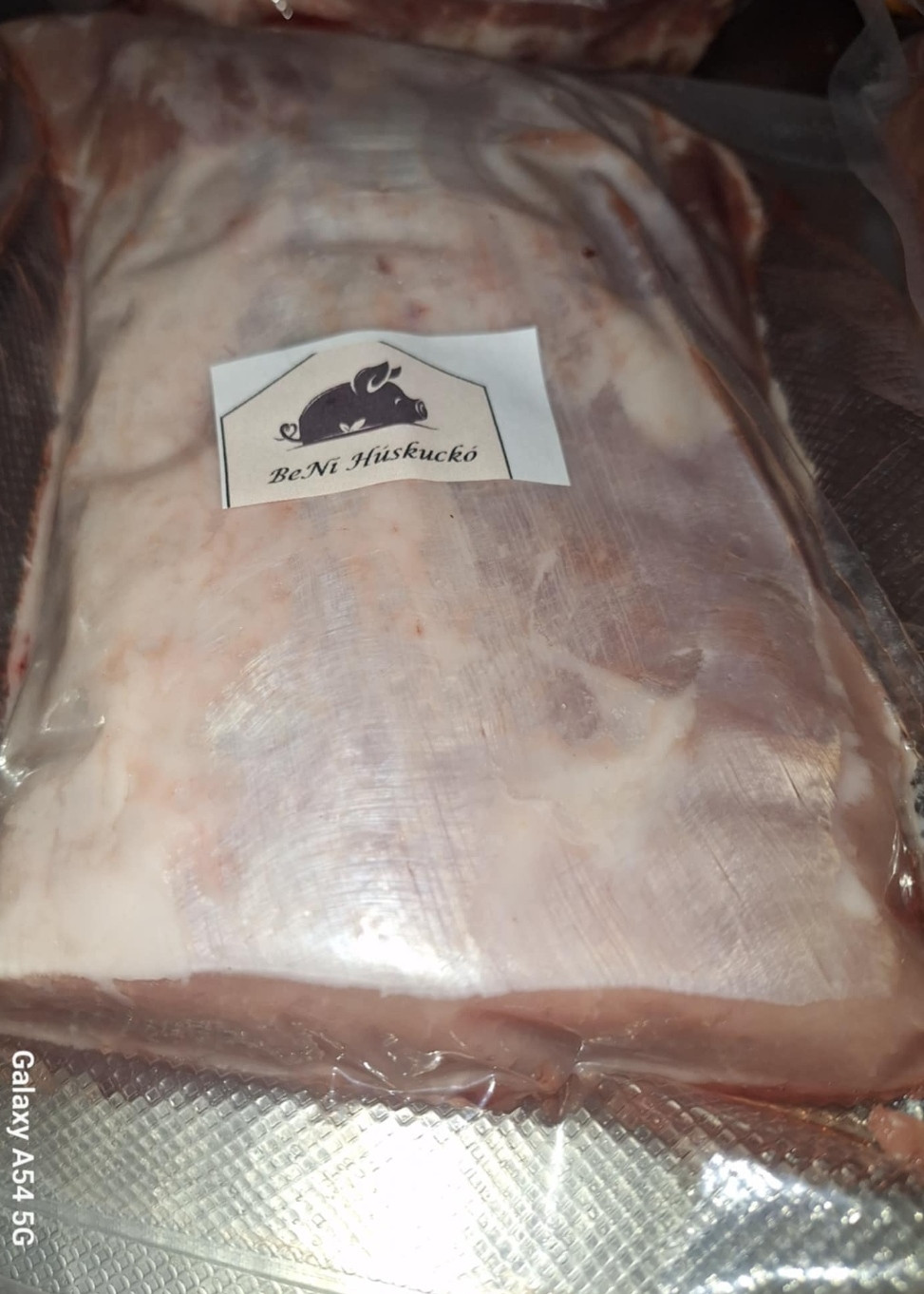 30-40 dkg kiszerelésben kapható, súlymérés szükséges. Angol szalonnáról egy kicsit bővebben. :) Az angolszalonna bőrös szalonnás karajból formázott téglatest alakú, sózással, füstöléssel tartósított húsáru, melynek egyik része húsos, vöröses vagy rózsaszín tónussal, a másik része pedig a fehér szalonnára hasonlít. Milyen formában fogyaszthatod ezt a finom húsos karajt? Friss zöldségekkel kiegészítve ízletes reggeli, tízórai lehet belőle. Húsvétkor és karácsonykor elsősorban főzve szokás fogyasztani, de egyéb alkalmakkor akár sütve is elkészítheted. Akár salátát, akár mustárt vagy tormát választasz hozzá, biztosan nem fogsz csalódni. Hogyan főzd meg az angolszalonnát? Az angolszalonnát lehet nyersen is enni, hiszen a füstölési eljárásnak köszönhetően már készterméknek minősíthető. Viszont főzve még markánsabb ízvilággal találkozhatsz. Semmi pikantéria nincs a főzésében, ugyanazt a módszert kell alkalmaznod, mint a normál füstölt áruk, sonkák és csülkök főzése esetén. Ugyanúgy hideg vízbe téve kell elkezdeni az angolszalonna főzését, lassú tűzön, több órán keresztül, minek végére tökéletes, omlós puhaságú húst kaphatsz. A darabàr hozzávetőleges becslés, a pontos ár a súlymérés után kerül meghatározásra.