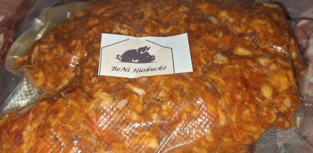 Összetevők: sertés darált hús, fűszerpaprika, fokhagyma, só, fűszerkömény Felhasználható tölteléknek káposztába, fasírtnak, rakott ételekhez.