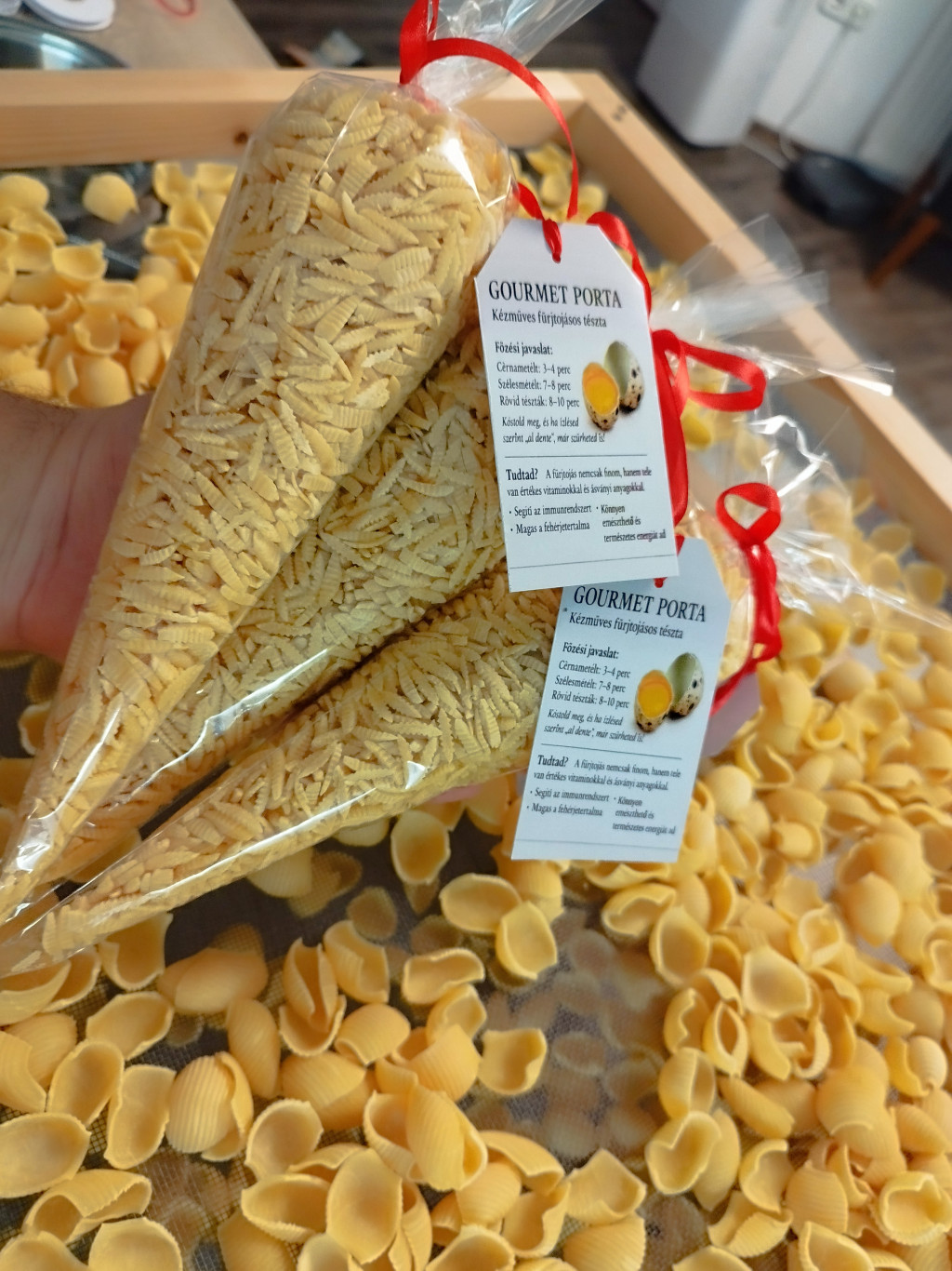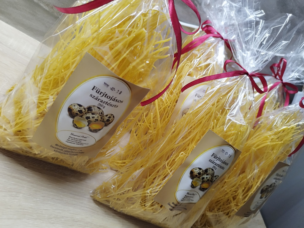 Fürjtojásos gyufatészta Apró, vékony szálú gyufatészta friss fürjtojással készítve. Finom állagú, mégis jól tartja formáját főzés közben, így ideális levesbetétnek vagy könnyű, gyors ételekhez. A fürjtojásnak köszönhetően szép színű, kellemesen házias ízű tészta, amely feldobja a legegyszerűbb fogásokat is. Kézműves kistermelői termék, adalékanyagok nélkül Összetevők: rétesliszt, friss fürjtojás Kiszerelés:250 g Tárolás: száraz, hűvös helyen