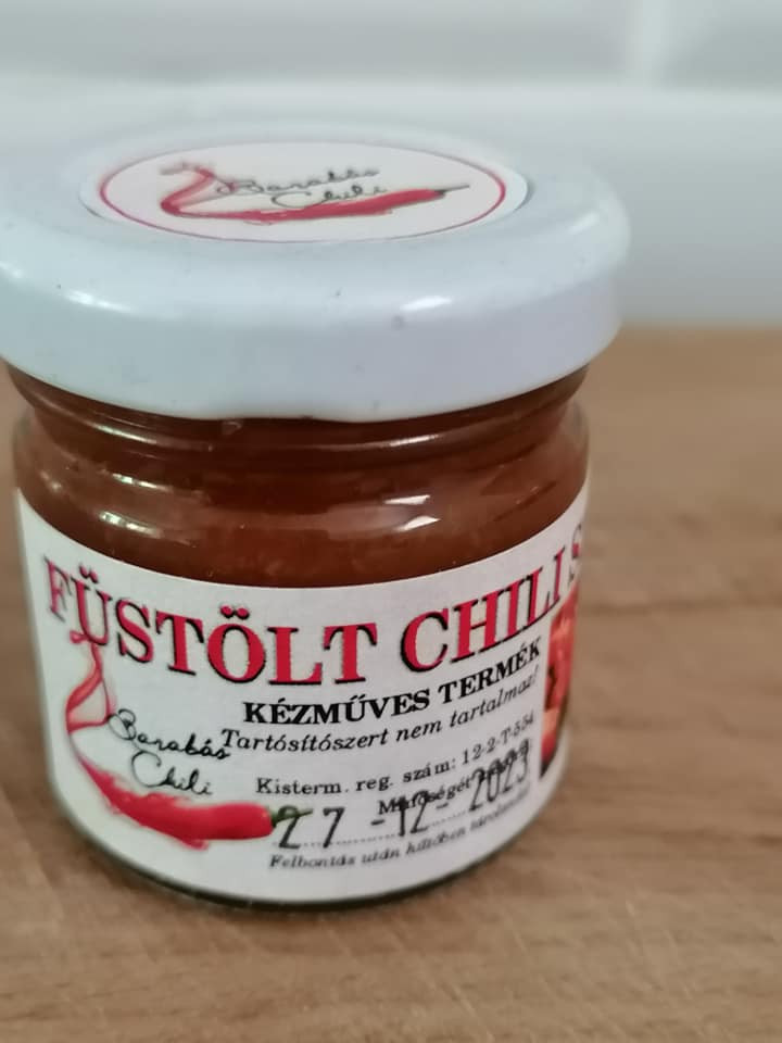 Barabás Chili keretében ajánlom a Füstőlt Chili Szószt! Orange Jolokia+Scorpion chili paprikából készült, hőkezelt termék, kizárólag a cimkén feltüntetettek vannak az üvegcsében. Ajánlatos fogpiszkálóval kóstólni, erős! Felbontás után hűtőben tárolandó! Akik szeretik az egyhén füstős élelmiszert, bátra használhatják levesbe, bab ételekhez, stb.