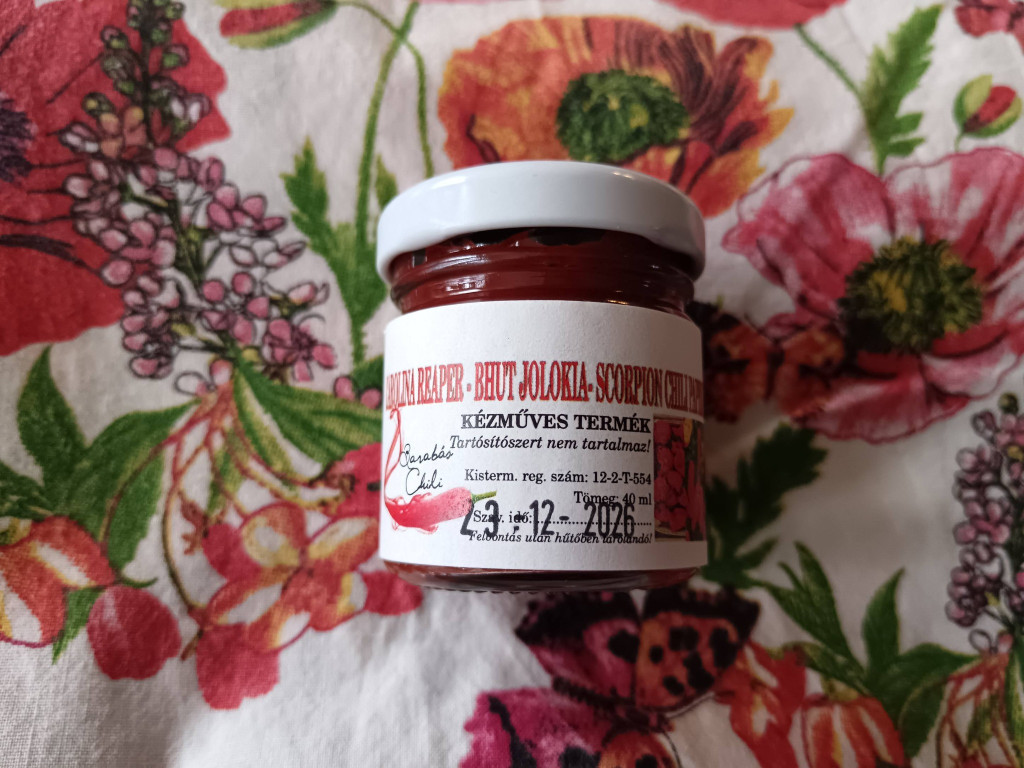Red Carolina Reapar+Jolokia+ Scorpion chili szósz. A világ 1-2. legerősebb chili paprikáiból készült termék, amelynek kapszaicin értéke kb. 1, 3 -1, 5 millió is lehet, vagyis brutál erős. Szintén adalék és tartósítómentes, kizárólag a címkén feltüntetett paprikákat tartalmazza az üveg. Gyermekek elől elzárva kell tartani és felbontás után hűtőbe kell tárolni. Minden élelmiszer ízesítéséhez ajánlott. A termék kóstolása fogpiszkálóval történjék, mert tudni kell, hogy nagyon erős! ! Ajánlott minden étel ízesítésére, csak óvatosan.