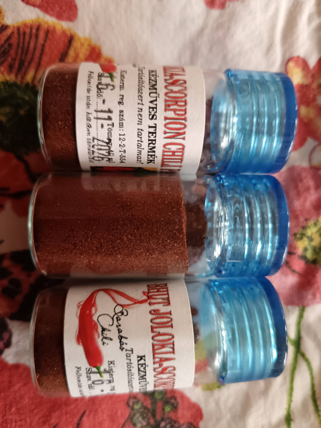 Red, Orange, Citrus és Chokolate chili paprikákból készült szószók. Jolokia+ Scorpion chili szósz. A világ 2. legerősebb chili paprikáiból készült termék, vagyis brutál erős. Szintén adalék és tartósítómentes, kizárólag a címkén feltüntetett paprikákat tartalmazza az üveg. Gyermekek elől elzárva kell tartani és felbontás után hűtőbe kell tárolni. Minden élelmiszer ízesítéséhez ajánlott. A termék kóstolása fogpiszkálóval történjék, mert tudni kell, hogy nagyon erős ! Ajánlott minden étel ízesítésére, csak óvatosan. Ezen termékeinkből 4 féle paprikából készült szósz van, a készlet erejéig egyen-egyenként is megvásárolhatok a feltüntetett egységes áron. Nagyon kellemes, finom ízek, ajánlom a különleges íízvág kedvelőinek !!