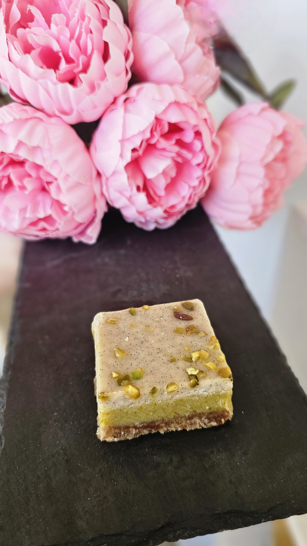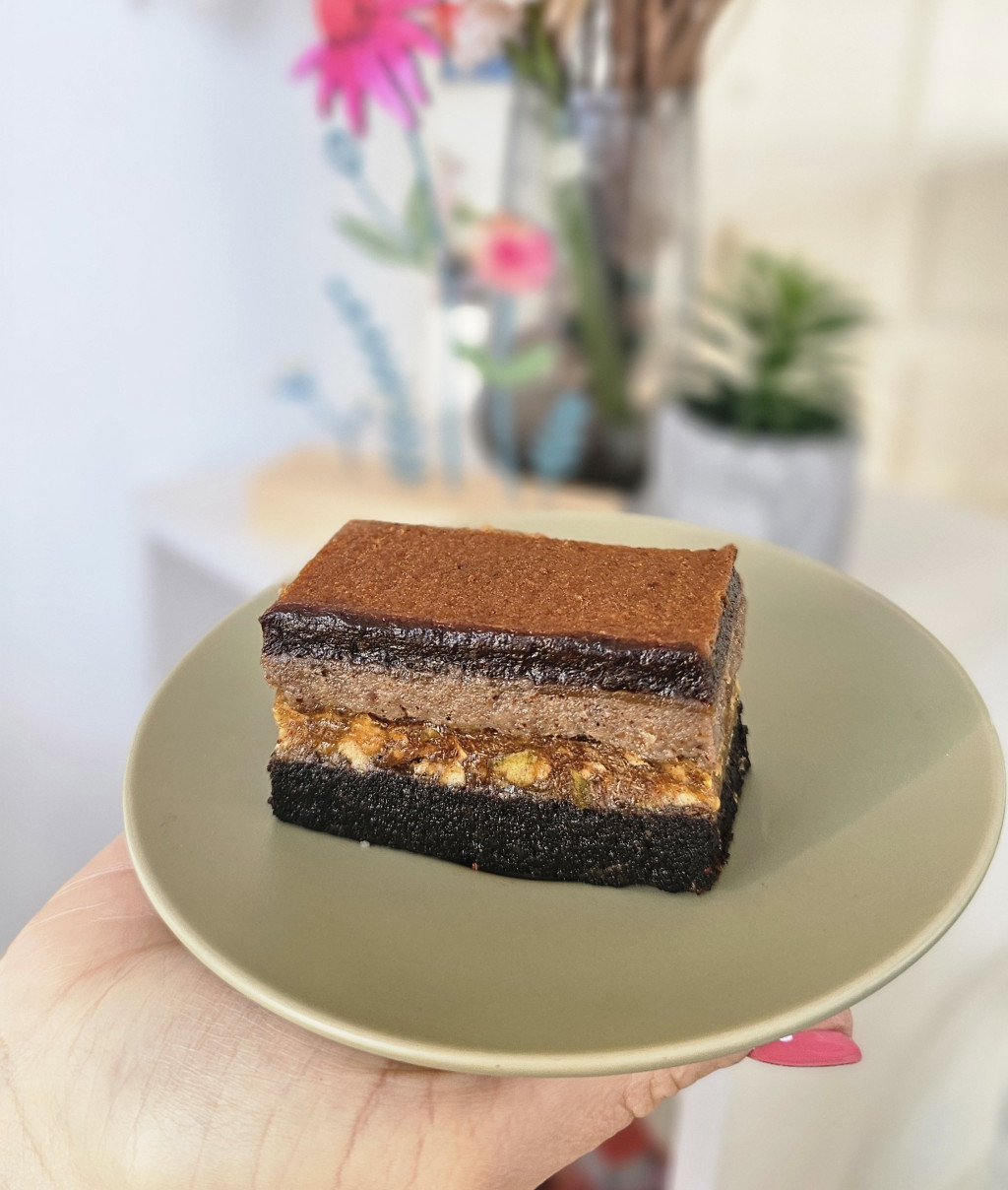 Vegán, búzaliszt és cukormentes pisztácia szelet
