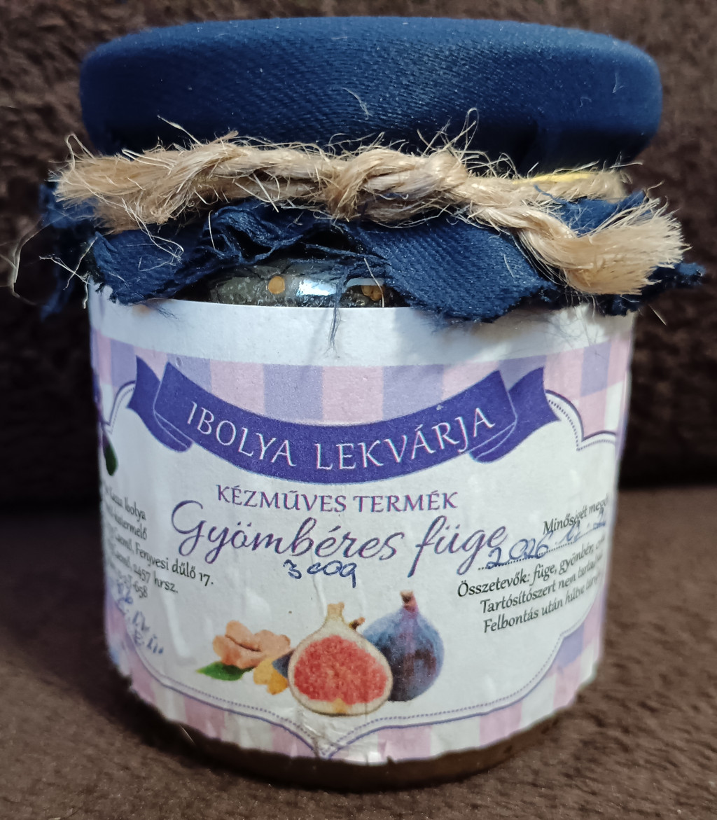Fügéből készült lekvár aminek pikánságát a gyömbér adja. Sült húsok mellé is jól illik.