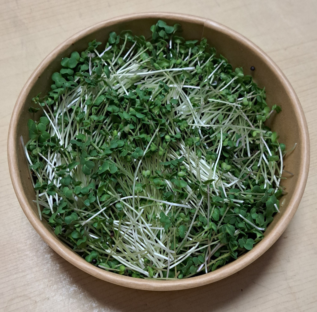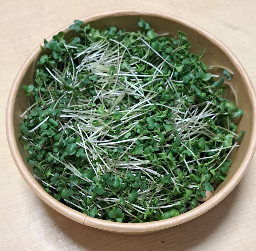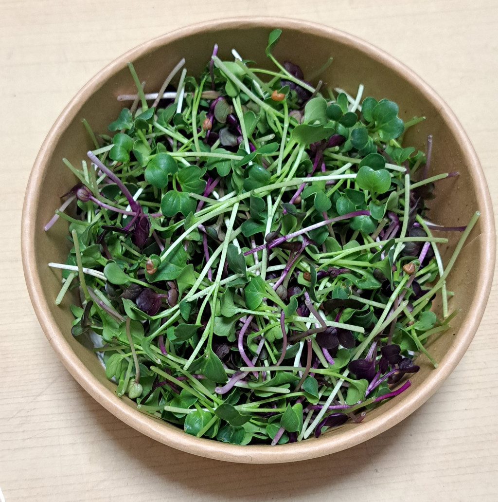 A vegyes mikrozöldünkben ezeket találod: retek mix, repce és vöröskáposzta mikrozöldek. A mikrozöldek koncentráltan tartalmazzák a kifejlett növény tápanyagait, egyes kutatások szerint akár 40-szer több tápanyagot is tartalmazhatnak. Vitaminok: Magas A-, B-, C-, E- és K-vitamin tartalom, ami támogatja az immunrendszert és a bőr egészségét Ásványi anyagok: Jelentős mennyiségű kalcium, vas, magnézium, kálium és cink tartalom Fehérje és rost: Kiváló vegán fehérjeforrás, rosttartalma pedig segíti az emésztést és a teltségérzet kialakulását. Antioxidánsok: Flavonoidokban és polifenolokban gazdag, ezek segítenek a gyulladások csökkentésében valamint a szív-érrendszer védelmében Tárolási tippek a maximális frissességért A leszüretelt mikrozöldekjeink megfelelő hűtés mellett általában 4–8 napig maradnak frissek. Papírtörlő trükk: Helyezz egy száraz papírtörlőt a tárolódoboz aljára és tetejére, hogy felszívja a felesleges párát. Hőmérséklet: Az ideális tárolási hőfok 2–4 °C között van, a hűtő zöldségtároló rekesze a legjobb hely számukra. Szárazon tartás: Soha ne mosd meg őket tárolás előtt, mert a nedvesség gyorsítja a penészedést és a fonnyadást, csak közvetlenül fogyasztás előtt öblítsd le őket. A konyhában rendkívül sokoldalúan alkalmazható: Nyersen: Saláták alapjaként vagy díszítéseként, szendvicsekbe, wrap-ekbe téve. Díszítésként: Krémlevesek (például borsó- vagy brokkolikrémleves) tetejére szórva. Turmixokba: Smoothie-k tápanyagtartalmának növelésére. Kíméletesen hőkezelve: Stir-fry ételekhez vagy tésztákhoz adva az utolsó pillanatban.