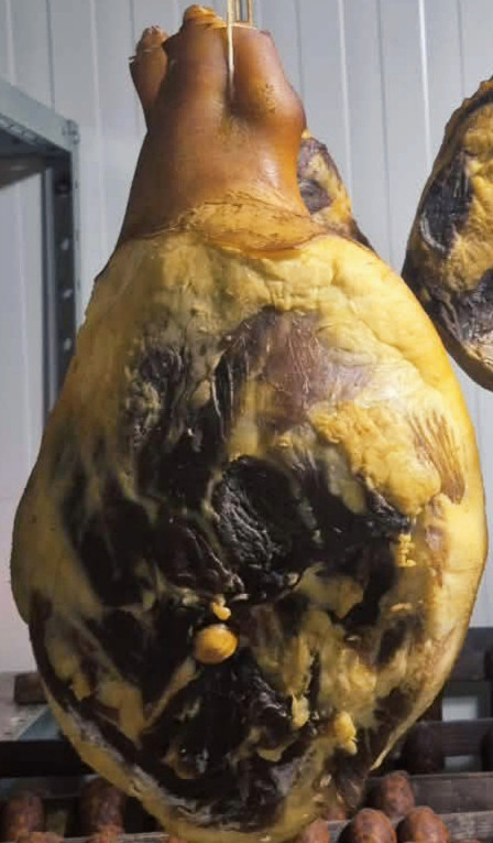 Csontos Füstölt MANGALICA hátsó sonka 3-4 kg körüli. Súlymérés szükséges.